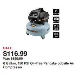 6 Gallon, 150 PSI Oil-Free Pancake Jobsite Air Compressor