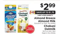 Blue Diamond Almond Breeze Milk 64 oz. or Planet Oat Oatmilk 52 oz