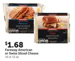 1Fareway Fareway American or Swiss Sliced Cheese offerFareway American or Swiss Sliced Cheese 12 oz.Fareway$1.6816 February 202621 February 2026 View offer