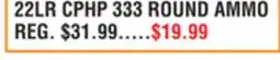 2Dunham's Sports 22LR CPHP 333 ROUND AMMO offer22LR CPHP 333 ROUND AMMODunham's Sports$32.24$19.99$12.25 Discount07 March 202612 March 2026 View offer
