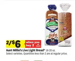 | Aunt millie's bread 22-24 oz. or english muffins 6 ct./12 oz | Meijer | $2.49 | 26 November 2023 | 02 December 2023 | |||