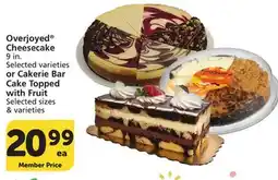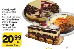 Overjoyed Cheesecake 9 in. Selected varieties or Cakerie Bar Cake Topped with Fruit