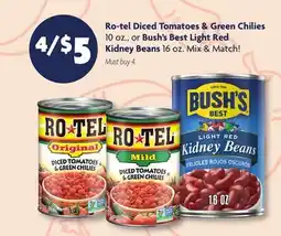 Ro-tel Diced Tomatoes & Green Chilies 10 oz., or Bush's Best Light Red Kidney Beans 16 oz