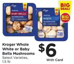 1Kroger Kroger Whole White or Baby Bella Mushrooms offerKroger Whole White or Baby Bella Mushrooms 1.5 lbKroger$6.0028 January 202603 February 2026 View offer