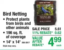 | Bird Netting | Menards | $4.99 | 22 April 2026 | 03 May 2026 | |||