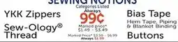 Hobby Lobby YKK Zippers, Sew-Ology Thread, Bias Tape, Hem Tape, Piping & Blanket Binding, Buttons offer
