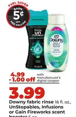 Hy-Vee Downy fabric rinse 16 fl. oz., UnStopables, Infusions or Gain Fireworks scent booster 5 oz offer