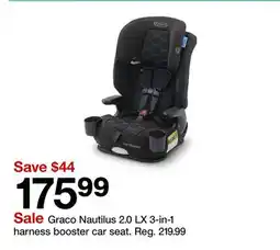 | Graco Nautilus 2.0 LX 3-in-1 harness booster car seat | Target | $175.99 | 26 April 2026 | 02 May 2026 | |||