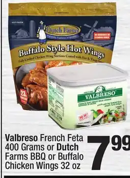 Valbreso French Feta 400 Grams or Dutch Farms BBQ or Buffalo Chicken Wings 32 oz
