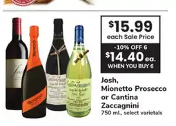 ACME Josh, Mionetto Prosecco or Cantina Zaccagnini offer
