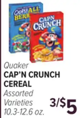 C Town QUAKER, CAP'N CRUNCH CEREAL, 12.6 Oz. Boxes offer