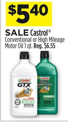 ![]() | Castrol® gtx® conventional or high mileage motor oil | Dollar General | $5.85 | 30 April 2023 | 06 May 2023 | ||