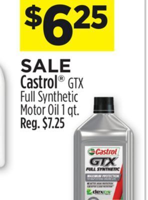 ![]() | Castrol® gtx full synthetic motor oil | Dollar General | $6.25 | 11 December 2022 | 17 December 2022 | ||