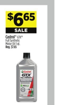![]() | Castrol gtx full synthetic motor oil | Dollar General | $6.65 | 05 September 2023 | 09 September 2023 | ||