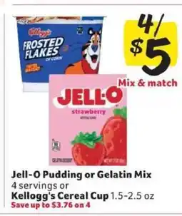 Winn Dixie Jell-O Pudding or Gelatin Mix / Kellogg's Cereal Cup offer