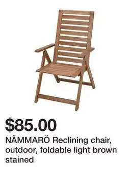 Ikea NÄMMARÖ Reclining chair, outdoor, foldable light brown stained offer