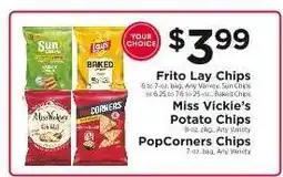 ShopRite Frito Lay Baked or Sun Chips, Miss Vickie's Potato Chips, PopCorners Chips offer