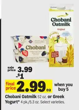 | Chobani Greek Yogurt 4 pk./5.3 oz. or Oatmilk* 52 oz | Meijer | $3.99 | 30 March 2025 | 05 April 2025 | |||