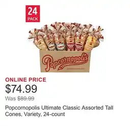 | Popcomopolis Ultimate Classic Assorted Tall Cones. Variety, 24-count | Costco | $89.99 | $74.99 | $15.00 Discount | 28 April 2025 | 04 May 2025 | |