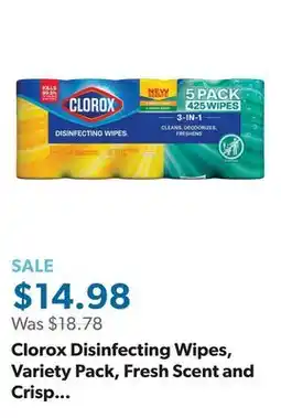 | Clorox Disinfecting Cleaning Wipes, Variety Pack, 5 ct., 425 wipes | Sam's Club | $18.98 | 01 May 2025 | 07 May 2025 | |||