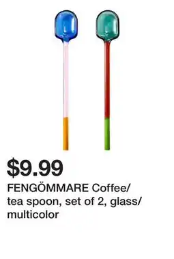 | FENGÖMMARE Coffee/tea spoon, set of 2, glass/multicolor | Ikea | $9.99 | 24 February 2026 | 02 March 2026 | |||