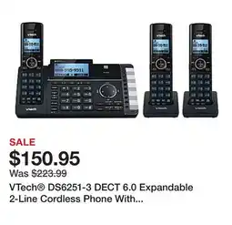 | Vtech® ds6251-3 dect 6.0 expandable 2-line cordless phone with answering system, 80-1401-00 | Office Depot | $119.95 | 23 May 2023 | 28 May 2023 | |||