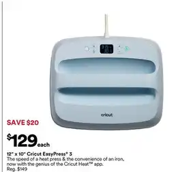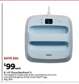 | 9" x 9" cricut easypress® 3 | Michaels | $129.00 | 21 September 2022 | 01 October 2022 |