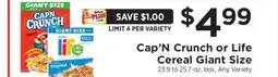 ShopRite Cap'N Crunch or Life Cereal Giant Size offer