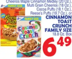 Bravo Supermarkets TOAST CRUNCH FAMILY SIZE 18.8 Oz. Box offer