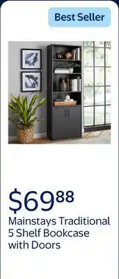 Walmart Mainstays Traditional 5 Shelf Bookcase with Doors, Black Finish offer