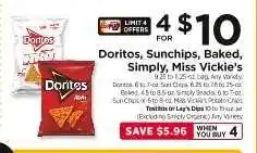 2ShopRite Doritos, Sunchips, Baked, Simply, Miss Vickie's offerDoritos, Sunchips, Baked, Simply, Miss Vickie'sShopRite$10.0026 April 202602 May 2026 View offer