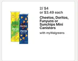 | Cheetos, Doritos, Funyuns or Sunchips Mini Canisters | Walgreens | $4.00 | 22 June 2025 | 28 June 2025 | |||