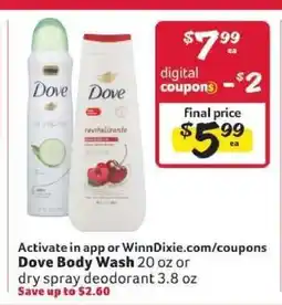 | Dove Body Wash or Dry Spray Deodorant | Winn Dixie | $5.99 | 28 January 2026 | 03 February 2026 | |||