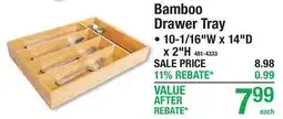 1Menards Bamboo Drawer Tray offerBamboo Drawer TrayMenards$7.9922 April 202603 May 2026 View offer