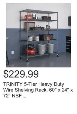 ![]() | TRINITY 5-Tier Heavy Duty Wire Shelving Rack, 60 x 24 x 72 NSF, Includes Wheels | Costco | $229.99 | 12 July 2024 | 18 July 2024 | ||