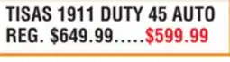 | TISAS 1911 DUTY 45 AUTO | Dunham's Sports | $599.99 | 01 June 2024 | 06 June 2024 |