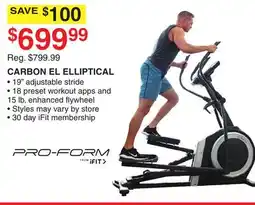 Dunham's Sports PRO-FORM CARBON EL ELLIPTICAL offerPRO-FORM CARBON EL ELLIPTICALDunham's Sports$599.9922 November 202526 November 2025