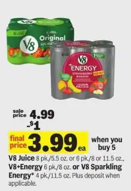 1Meijer V8 Juice, V8+Energy, or V8 Sparkling +Energy offerV8 Juice, V8+Energy, or V8 Sparkling +EnergyMeijer$3.9928 January 202603 February 2026 View offer