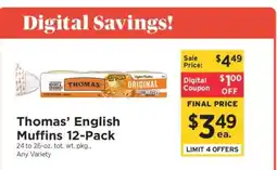 1ShopRite Thomas' English Muffins 12-Pack offerThomas' English Muffins 12-PackShopRite$3.4904 January 202610 January 2026 View offer