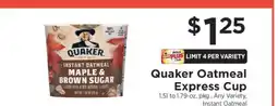 2ShopRite Quaker Oatmeal Express Cup offerQuaker Oatmeal Express CupShopRite$1.2504 January 202610 January 2026 View offer
