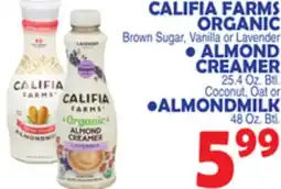 ![]() | CALIFIA FARMS ALMONDMILK 48 Oz. Btl | Bravo Supermarkets | $3.99 | 10 May 2024 | 16 May 2024 | ||