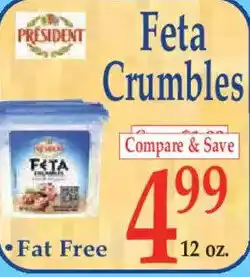 Albertsons President Feta Crumbles offerPresident Feta Crumbles 6 oz.Albertsons$4.9905 January 202601 February 2026