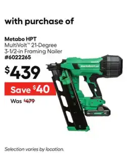 Lowe's Metabo HPT MultiVolt 21-Degree 3-1/2-in Framing Nailer offer