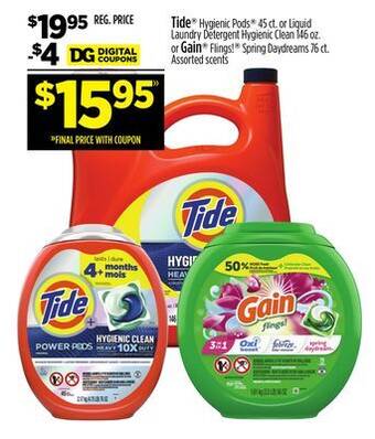 Dollar General Gain Liquid Laundry Detergent., Super Flings! or Flings! offer