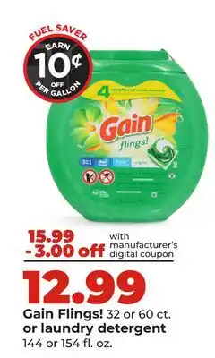 | Gain flings! 60 ct. or gain laundry detergent 154 fl. oz | Hy-Vee | $12.94 | 27 November 2023 | 03 December 2023 | |||