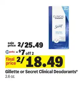 1Meijer Gillette or Secret Clinical Deodorants offerGillette or Secret Clinical DeodorantsMeijer$25.4928 January 202603 February 2026 View offer