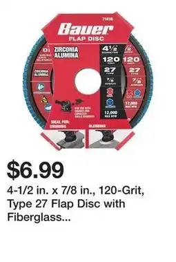 | 4-1/2 in. x 7/8 in., 120-Grit Type 27 Flap Disc with Fiberglass Backing and Aluminum Oxide Grain | Harbor Freight Tools | $4.98 | $2.99 | $1.99 Discount | 03 February 2026 | 16 February 2026 | |
