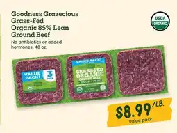 | Goodness Grazecious Grass-Fed Organic 85% Lean Ground Beef | Sprouts Farmers Market | $8.49 | 27 August 2025 | 02 September 2025 | |||