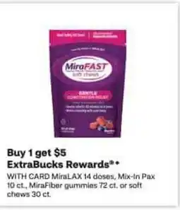 1CVS MiraLAX , Mix-In Pax, MiraFiber gummies or soft chews offerMiraLAX , Mix-In Pax, MiraFiber gummies or soft chewsCVSBuy 1 get $518 January 202624 January 2026 View offer