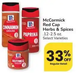 1Albertsons McCormick Red Cap Herbs & Spices offerMcCormick Red Cap Herbs & Spices 0.12-2.5 ozAlbertsons01 April 202628 April 2026 View offer
